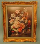 Barbara Shaw floral print, Bouquet of Flowers in 21"w x 25"h ornate gold leaf frame. Barbara Shaw floral print, Bouquet of Flowers in 21"w x 25"h ornate gold leaf frame.