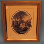Sungott Art Studios hand-colored William Hamilton engraving of a pastoral scene of shepherds and a flock of Sheep, 19 1/2"w x 22"h in patinated gold leaf frame. Sungott Art Studios hand-colored William Hamilton engraving of a pastoral scene of shepherds and a flock of Sheep, 19 1/2"w x 22"h in patinated gold leaf frame.