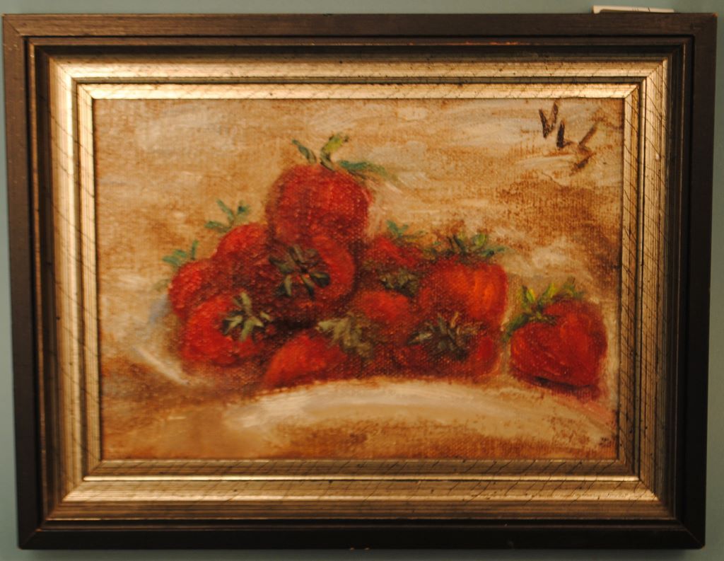 Vera L. Stephenson, Jackson, Mississippi, oil on canvas painting of strawberries, 5" x 7", 7" x 9" framed by Ford Framing. Vera L. Stephenson, Jackson, Mississippi, oil on canvas painting of strawberries, 5" x 7", 7" x 9" framed by Ford Framing.