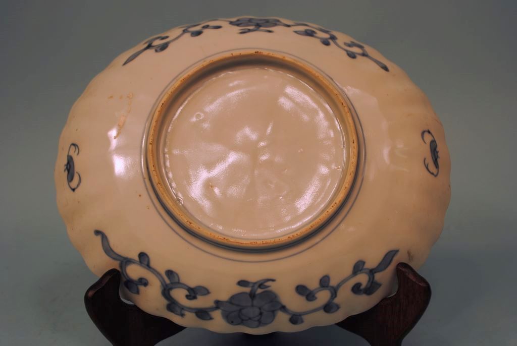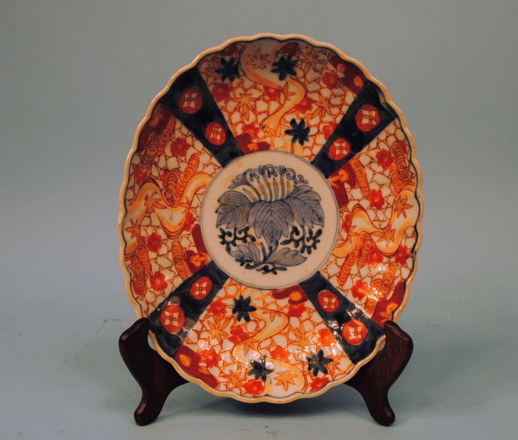 A late 19th century Japanese Imari oval melon-ribbed bowl, 9 3/4" x 8" x 1 5/8"h, a 1 1/2" tight hairline at underside edge. A late 19th century Japanese Imari oval melon-ribbed bowl, 9 3/4" x 8" x 1 5/8"h, a 1 1/2" tight hairline at underside edge.