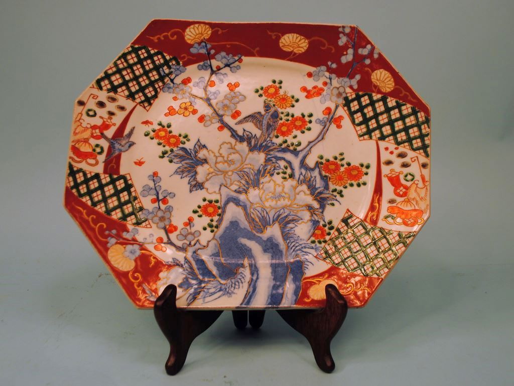 A dramatic 19th century Japanese Imari platter decorated with a knarled tree and bird alit and in flight, with very fine Meiji Arita style work, 11 3/8" x 9 1/2" A dramatic 19th century Japanese Imari platter decorated with a knarled tree and bird alit and in flight, with very fine Meiji Arita style work, 11 3/8" x 9 1/2"