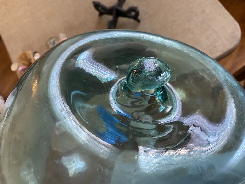 Vintage Glass Fishing Float, hand crafted, good condition, does not have rope, 9"h, Location Living Room 1 Vintage Glass Fishing Float, hand crafted, good condition, does not have rope, 9"h, Location Living Room 1