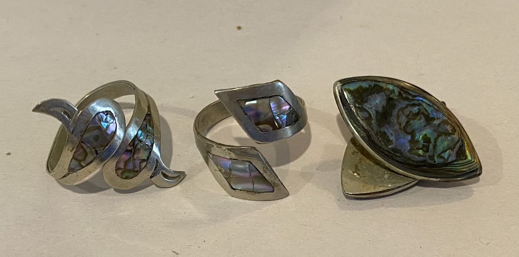 Three Sterling Abolone Ring and Earrings, Location Living Room 2 Three Sterling Abolone Ring and Earrings, Location Living Room 2