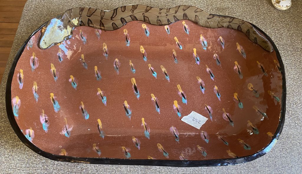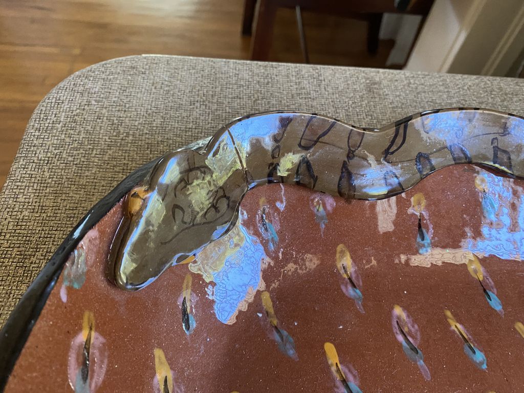Hand Crafted Stoneware Snake Serving Dish, with snake emblem, unsigned, 17"w, Location Foyer Hand Crafted Stoneware Snake Serving Dish, with snake emblem, unsigned, 17"w, Location Foyer