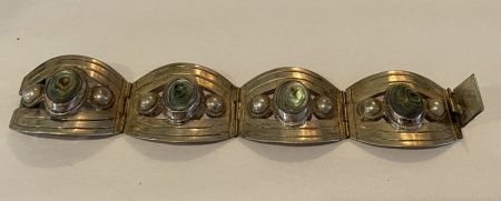 Mexican .925 Sterling Abalone Bracelet, 7"w. Location Living Room 2 Mexican .925 Sterling Abalone Bracelet, 7"w. Location Living Room 2