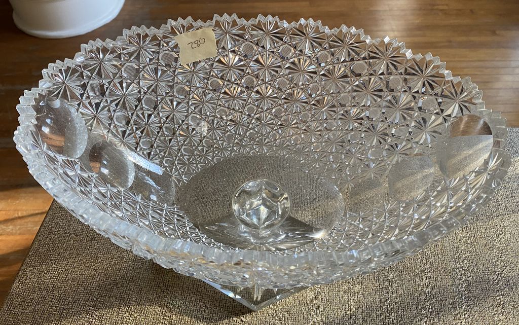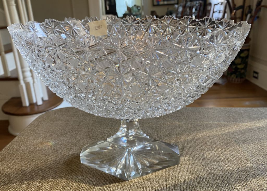 Daisy and Button Glass Center Piece Footed Bowl, 8"h., 12"w, Location Dining Room Daisy and Button Glass Center Piece Footed Bowl, 8"h., 12"w, Location Dining Room