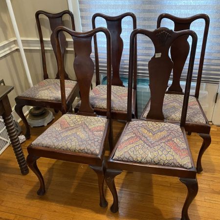 5 Queen Anne Mahogany Dining Chairs, some finish wear, Location Living Room 2 5 Queen Anne Mahogany Dining Chairs, some finish wear, Location Living Room 2