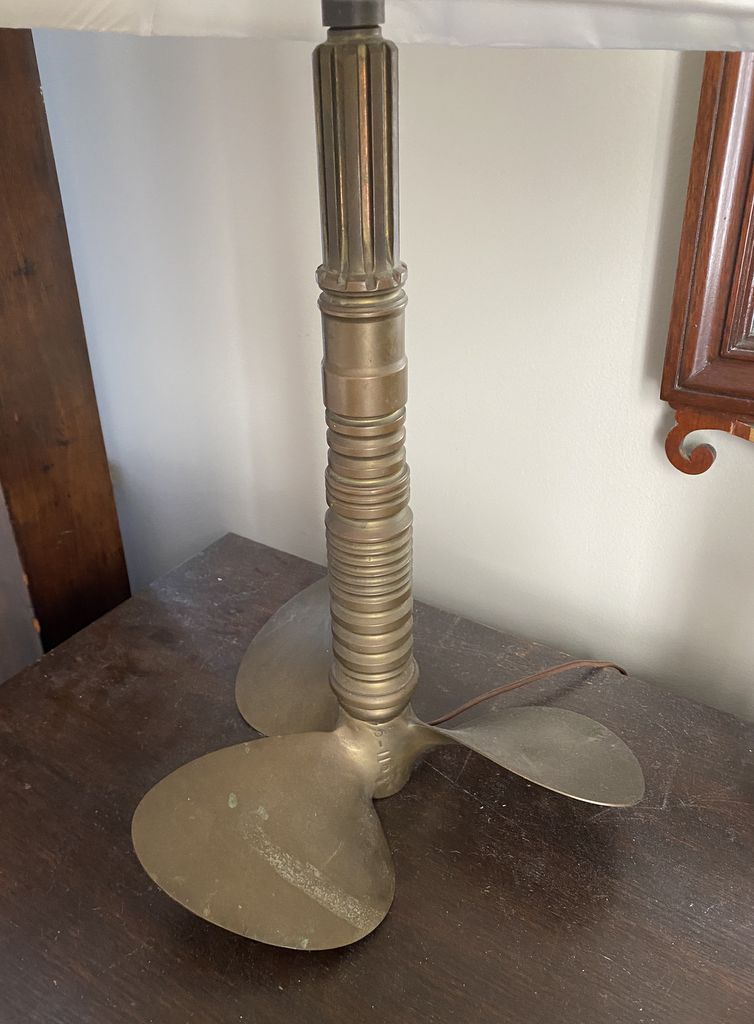 Hand Crafted Brass Propeller Table Lamp, 28"h, Location Bedroom 3 Hand Crafted Brass Propeller Table Lamp, 28"h, Location Bedroom 3