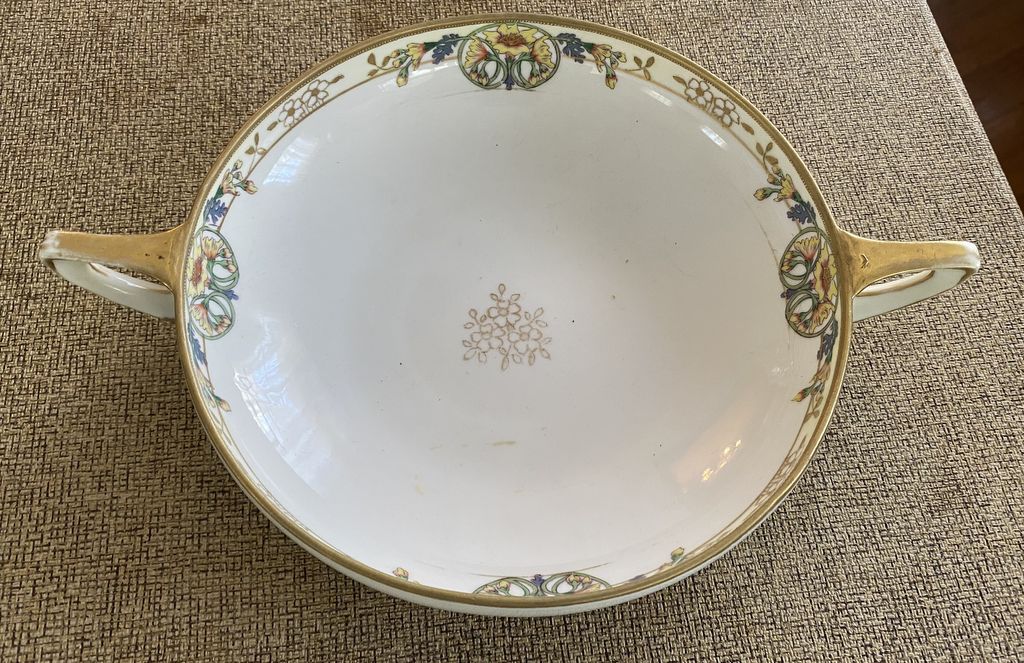 NIPPON HANDPAINTED DOUBLE HANDLED SOUP BOWL, 8"w, Location Living Room 1 NIPPON HANDPAINTED DOUBLE HANDLED SOUP BOWL, 8"w, Location Living Room 1