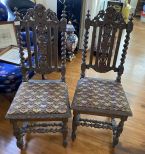 324 Pair of Antique Hunting Renaissance French Style Oak Chairs
