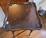 Vintage Mahogany French Style Mahogany Tiered Side Table, has scratches on finish, 28"h., 21"w, Location Living Room 1 Vintage Mahogany French Style Mahogany Tiered Side Table, has scratches on finish, 28"h., 21"w, Location Living Room 1