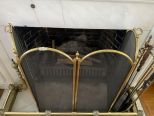 Brass Fireplace Set, fire fender, fire screen, fireplace tools, andirons, Location Living Room 1 Brass Fireplace Set, fire fender, fire screen, fireplace tools, andirons, Location Living Room 1
