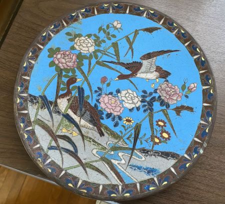 Antique Japanese Cloisonne Charger, 9 1/2"h, Location Living Room 1 Antique Japanese Cloisonne Charger, 9 1/2"h, Location Living Room 1