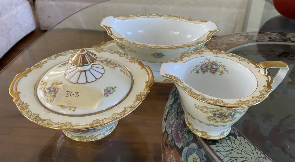 363 Noritake "Acacia" Porcelain Gravy, Creamer, and Sugar