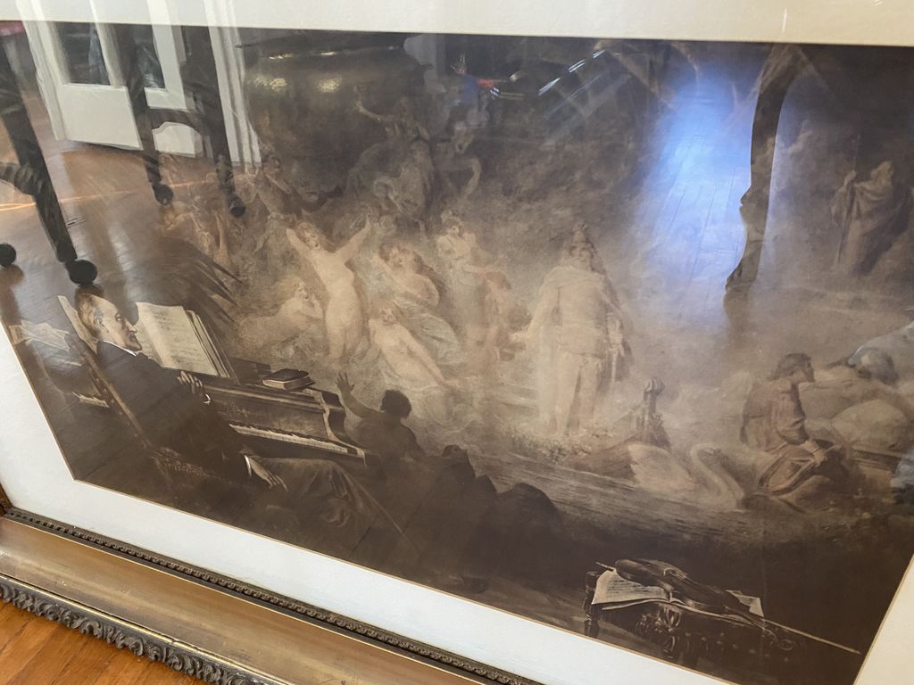Early 20th Century Framed Print of Richard Rogers Composer with Swan Violin Piano Musing , matted, frame is 28"h., 42"w, Location Living Room 1 Early 20th Century Framed Print of Richard Rogers Composer with Swan Violin Piano Musing , matted, frame is 28"h., 42"w, Location Living Room 1