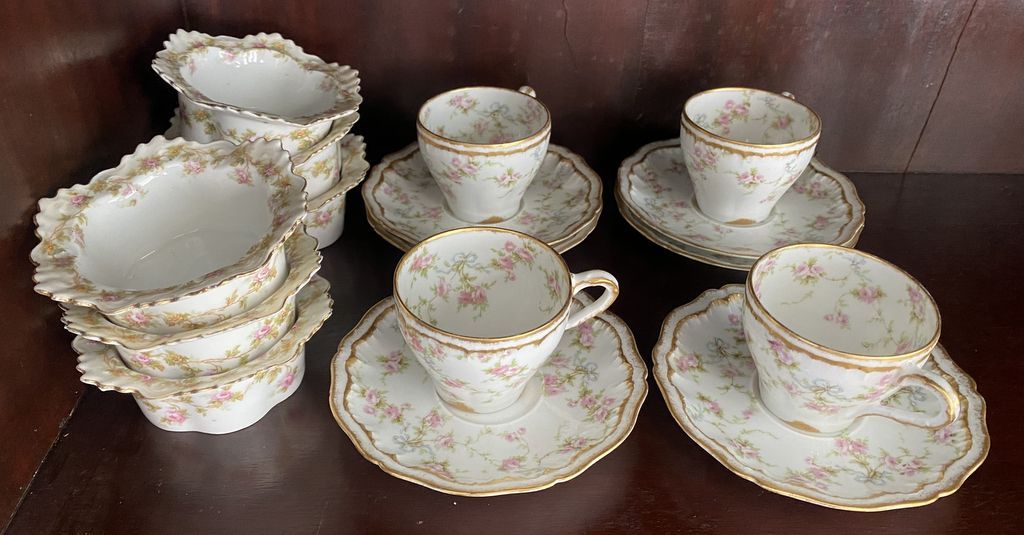 388 Theodore Haviland New Orleans Porcelain Bowls, Cups, and Saucers
