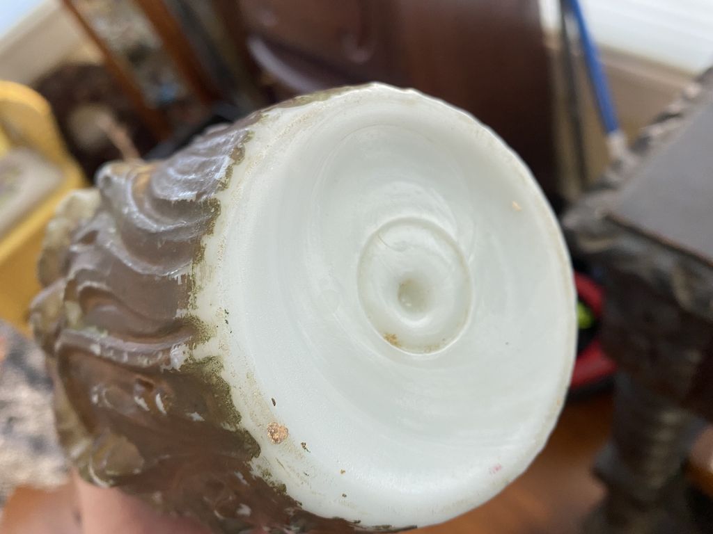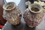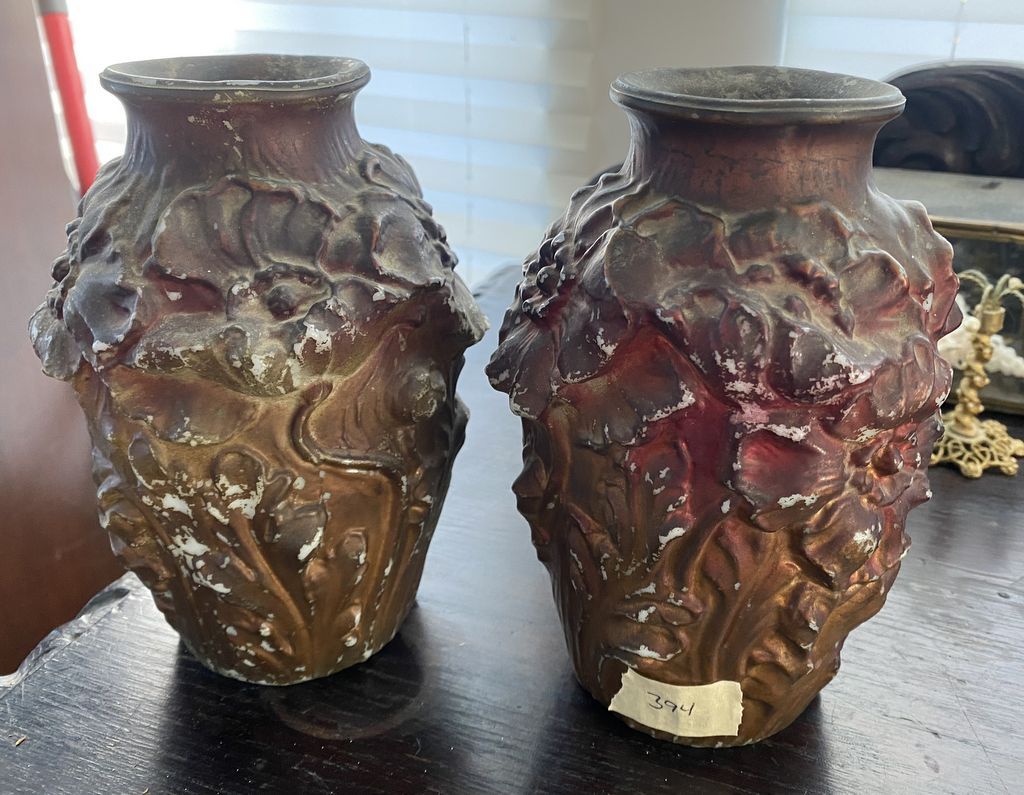 Pair of Antique Floral Goofus Glass Vases, has wear, painted milk glass, 7"h, Location Sunroom Pair of Antique Floral Goofus Glass Vases, has wear, painted milk glass, 7"h, Location Sunroom