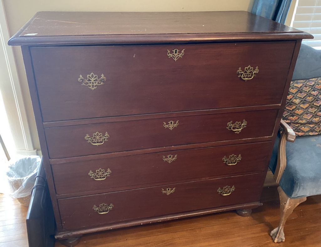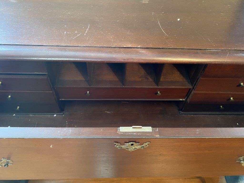 Vintage Mahogany Butler's Desk/Secretary Chest, back right leg is missing, needs some work, finish has light wear, 43"h, 46"w, Location Upstairs Bedroom 1 Vintage Mahogany Butler's Desk/Secretary Chest, back right leg is missing, needs some work, finish has light wear, 43"h, 46"w, Location Upstairs Bedroom 1