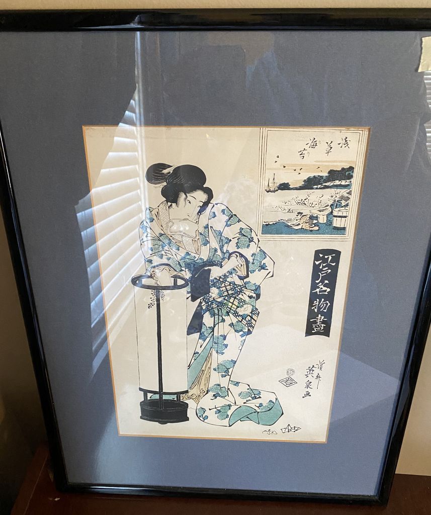 Pair of Geisha Artwork Prints, matted, framed, 22"h., 16"w. Location Upstairs Bedroom 1 Pair of Geisha Artwork Prints, matted, framed, 22"h., 16"w. Location Upstairs Bedroom 1