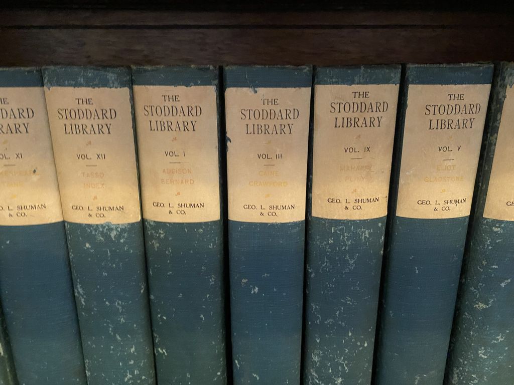 Collection of Stoddard Library Hard Bound Books, aged condition. Location Upstairs Bedroom 2 Collection of Stoddard Library Hard Bound Books, aged condition. Location Upstairs Bedroom 2