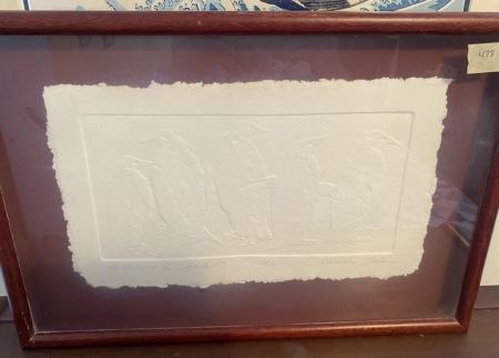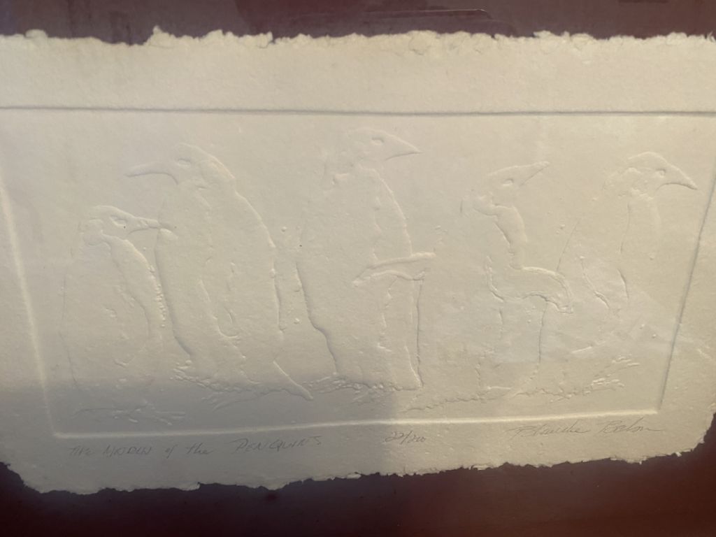 Blanche Batson "Penguins" 22/200 Embossed Paper Art, 13"h., 19"w, Location Upstairs Bedroom 2 Blanche Batson "Penguins" 22/200 Embossed Paper Art, 13"h., 19"w, Location Upstairs Bedroom 2