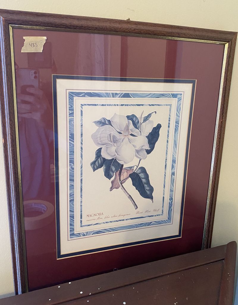 Framed Magnolia Print, matted, framed, 22"h., 18"w. Location Upstairs Bedroom 2 Framed Magnolia Print, matted, framed, 22"h., 18"w. Location Upstairs Bedroom 2