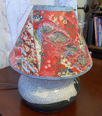 Crackle Glazed Pottery Vase lamp, with shade, Location Upstairs Bedroom 2 Crackle Glazed Pottery Vase lamp, with shade, Location Upstairs Bedroom 2