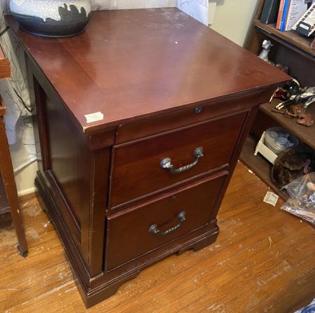 Modern Cherry Two Drawer File Cabinet, light finish wear, 30"h., 24"w., 23"w.Location Upstairs Bedroom 2 Modern Cherry Two Drawer File Cabinet, light finish wear, 30"h., 24"w., 23"w.Location Upstairs Bedroom 2