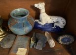 Sand Dollar, Pottery vase, ceramic dog figurine, candle holder, stones, plaque, Location Upstairs Bedroom 2 Sand Dollar, Pottery vase, ceramic dog figurine, candle holder, stones, plaque, Location Upstairs Bedroom 2