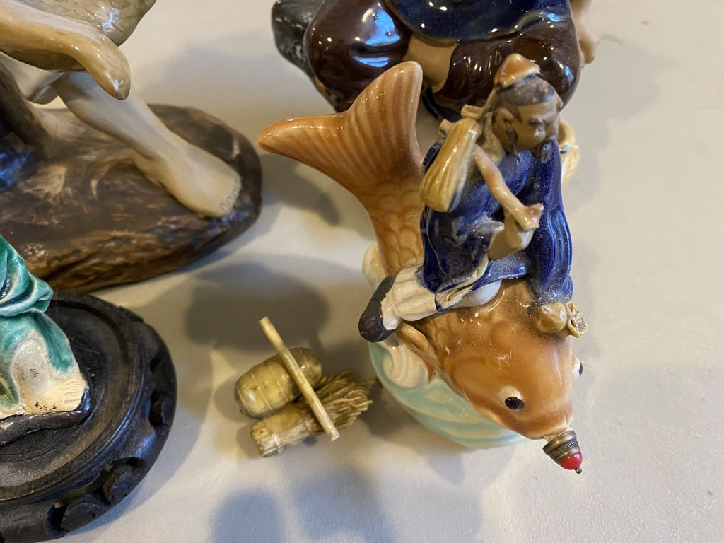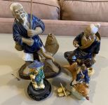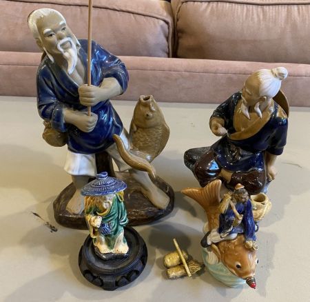 Three Shiwan Mudman Chinese Fishermen Figurines, Location Living Room 1 Three Shiwan Mudman Chinese Fishermen Figurines, Location Living Room 1