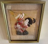514 Vintage Japanese Quilted Geisha 3d Shadowbox
