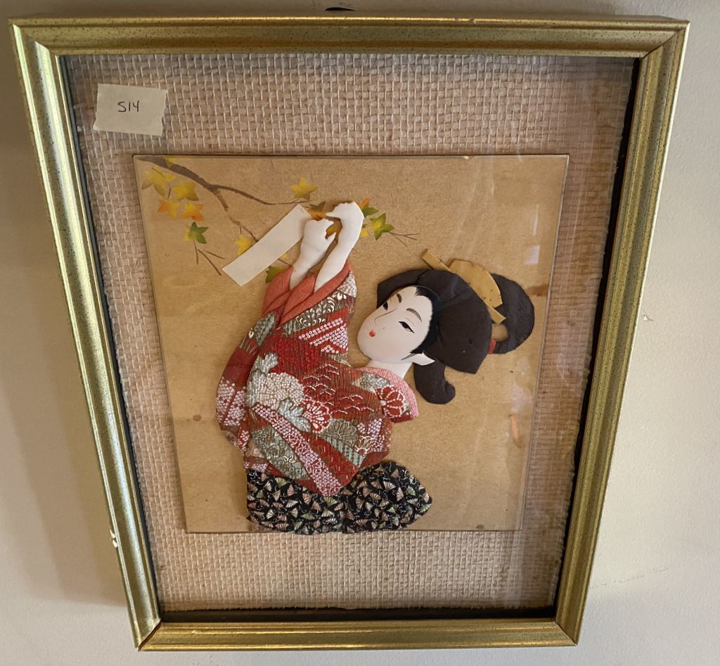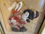Vintage Japanese Quilted Geisha 3d Shadowbox, frame is 17"h,. 13"w. Location Stairs Vintage Japanese Quilted Geisha 3d Shadowbox, frame is 17"h,. 13"w. Location Stairs