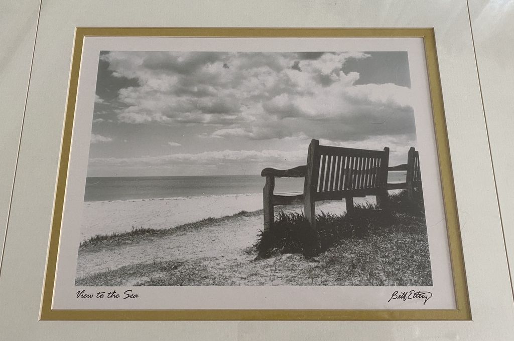 "View of the Sea" Framed Print by Betty E, frame is 17"h., 19"w. Location Bedroom 3 "View of the Sea" Framed Print by Betty E, frame is 17"h., 19"w. Location Bedroom 3