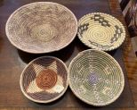 Four Vintage Hand Weaved Tribal Baskets, Location Dining Room Four Vintage Hand Weaved Tribal Baskets, Location Dining Room