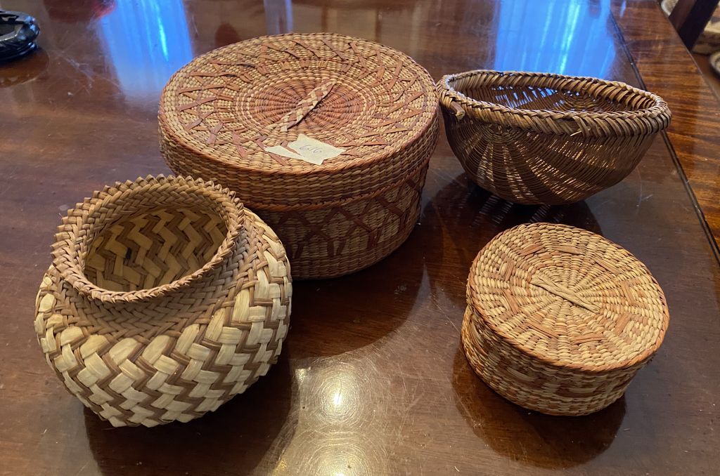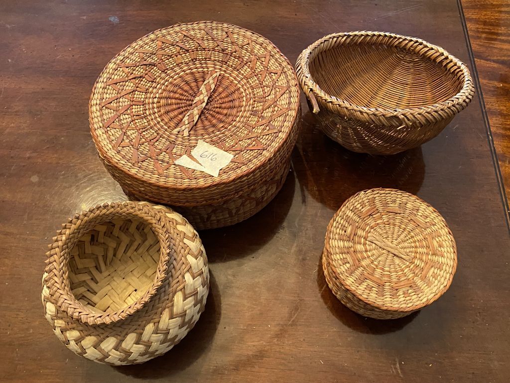 Tarahumara Style Basket, Wicker Woven Decorative Container, Sweet Grass Basket and Wicker Gathering Basket, Location Dining Room Tarahumara Style Basket, Wicker Woven Decorative Container, Sweet Grass Basket and Wicker Gathering Basket, Location Dining Room
