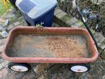 Vintage Radio Flyer Pull Wagon, aged condition with rust, rubber wheels, with pull handle. Vintage Radio Flyer Pull Wagon, aged condition with rust, rubber wheels, with pull handle.