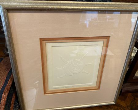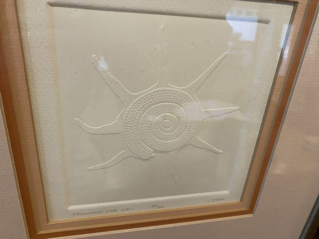 L. Dubose Signed "Triumphant Star Shell" 189/300 Embossed Paper Art, matted, frame is 13"h., 13"w. Location Living Room 2 L. Dubose Signed "Triumphant Star Shell" 189/300 Embossed Paper Art, matted, frame is 13"h., 13"w. Location Living Room 2
