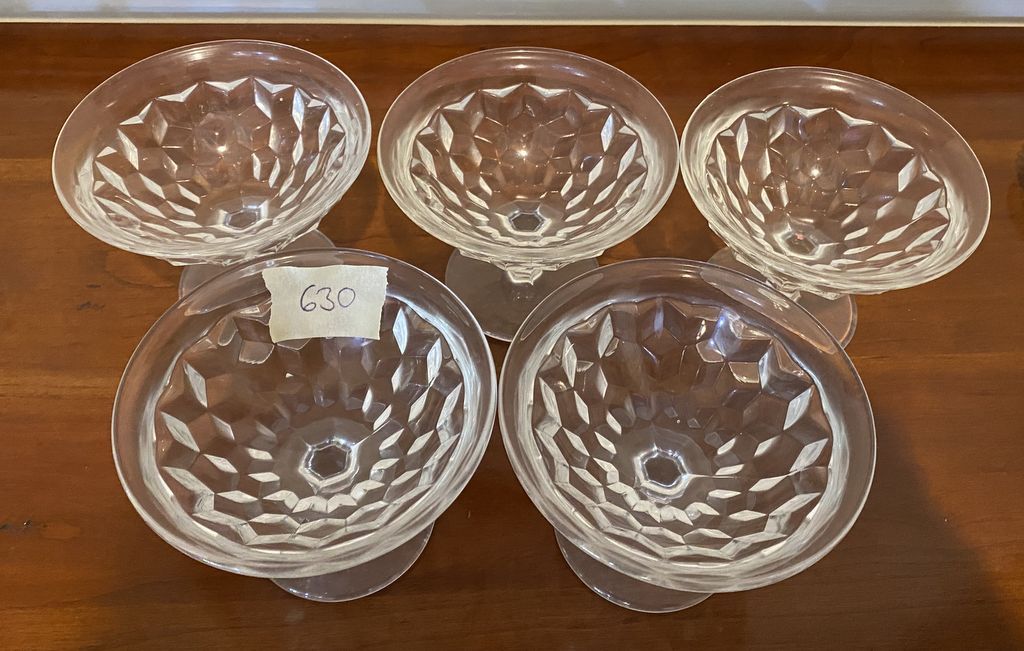 5 Fostoria American Clear Sherbets, Location Hall by Kitchen 5 Fostoria American Clear Sherbets, Location Hall by Kitchen