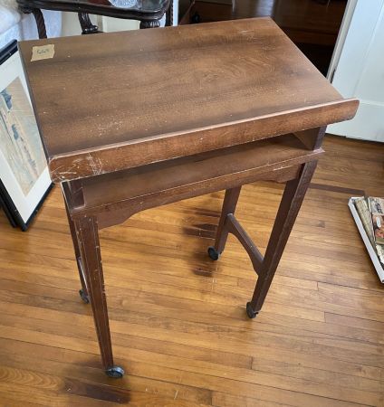 Cherry Wood Rolling Book Cart, 33"h, 23"w. Location Living Room 1 Cherry Wood Rolling Book Cart, 33"h, 23"w. Location Living Room 1