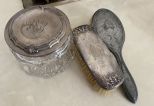 681 Sterling Lid Glass Powder, Silver Plate Brushes