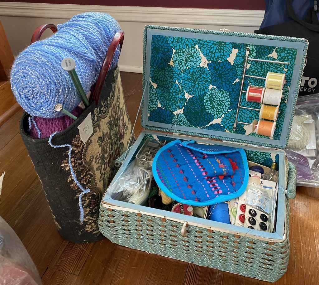 Sewing and Knitting Supplies, yards, and bags, thread, Location Attic Sewing and Knitting Supplies, yards, and bags, thread, Location Attic