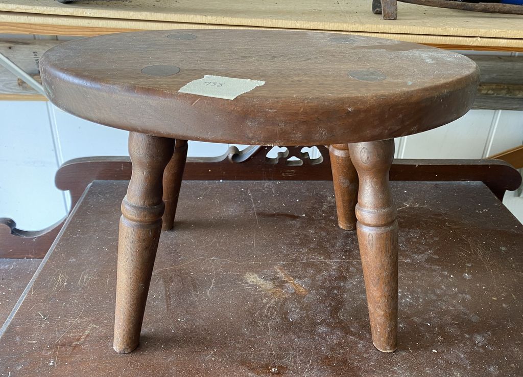 Primitive Style Milking Stool Oak Stool, 9"H., 14"w, Location Garage Primitive Style Milking Stool Oak Stool, 9"H., 14"w, Location Garage