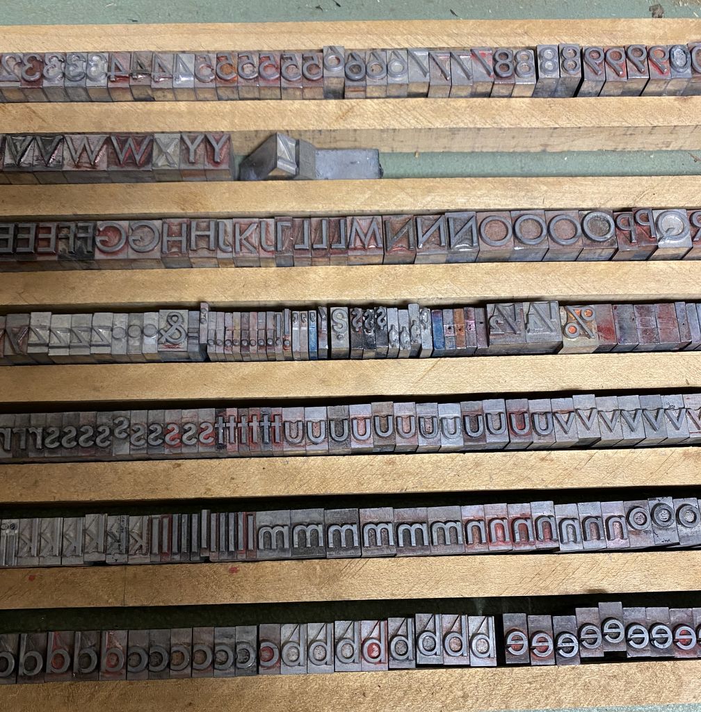 Lead Printing Press Type Blocks, in case, good condition, Location Shop Lead Printing Press Type Blocks, in case, good condition, Location Shop