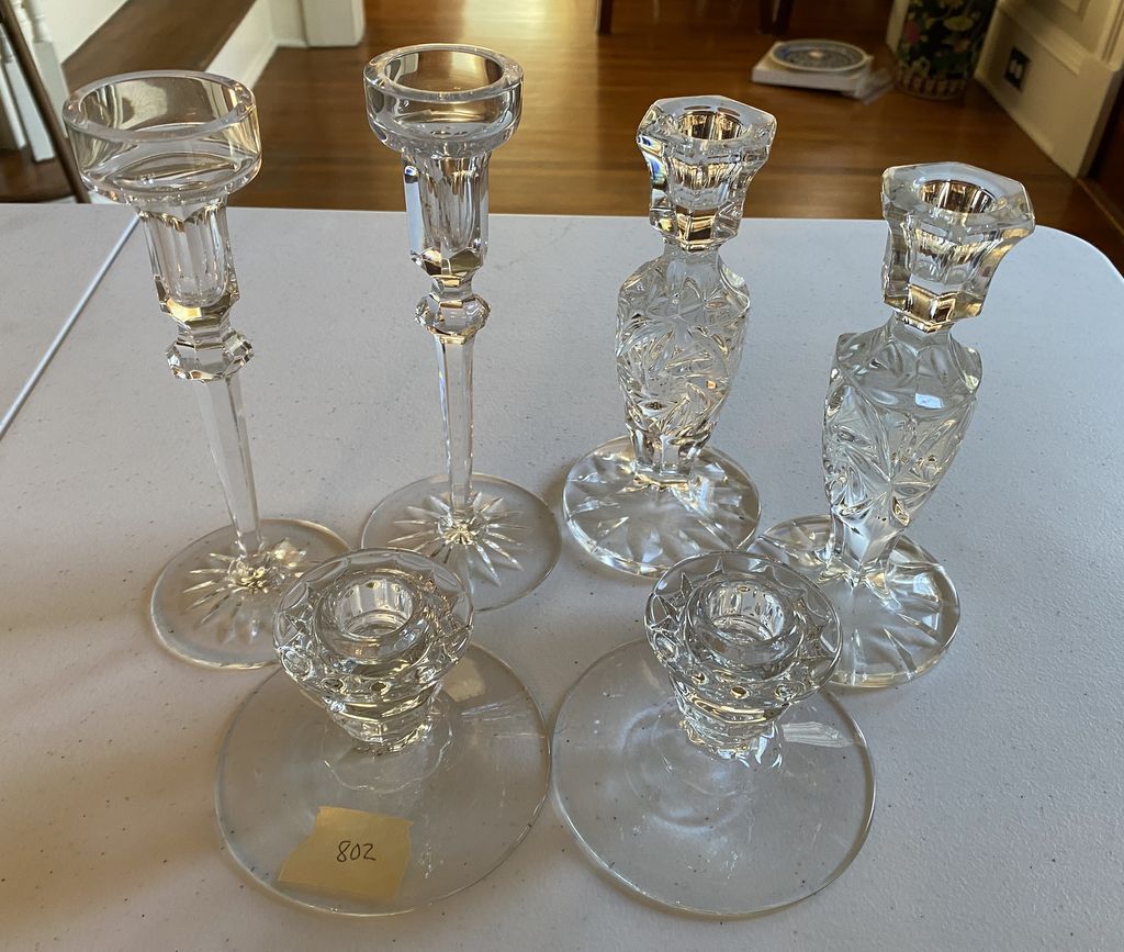 Three Pair of Glass Crystal Candle Holders, Location Dining Room Three Pair of Glass Crystal Candle Holders, Location Dining Room