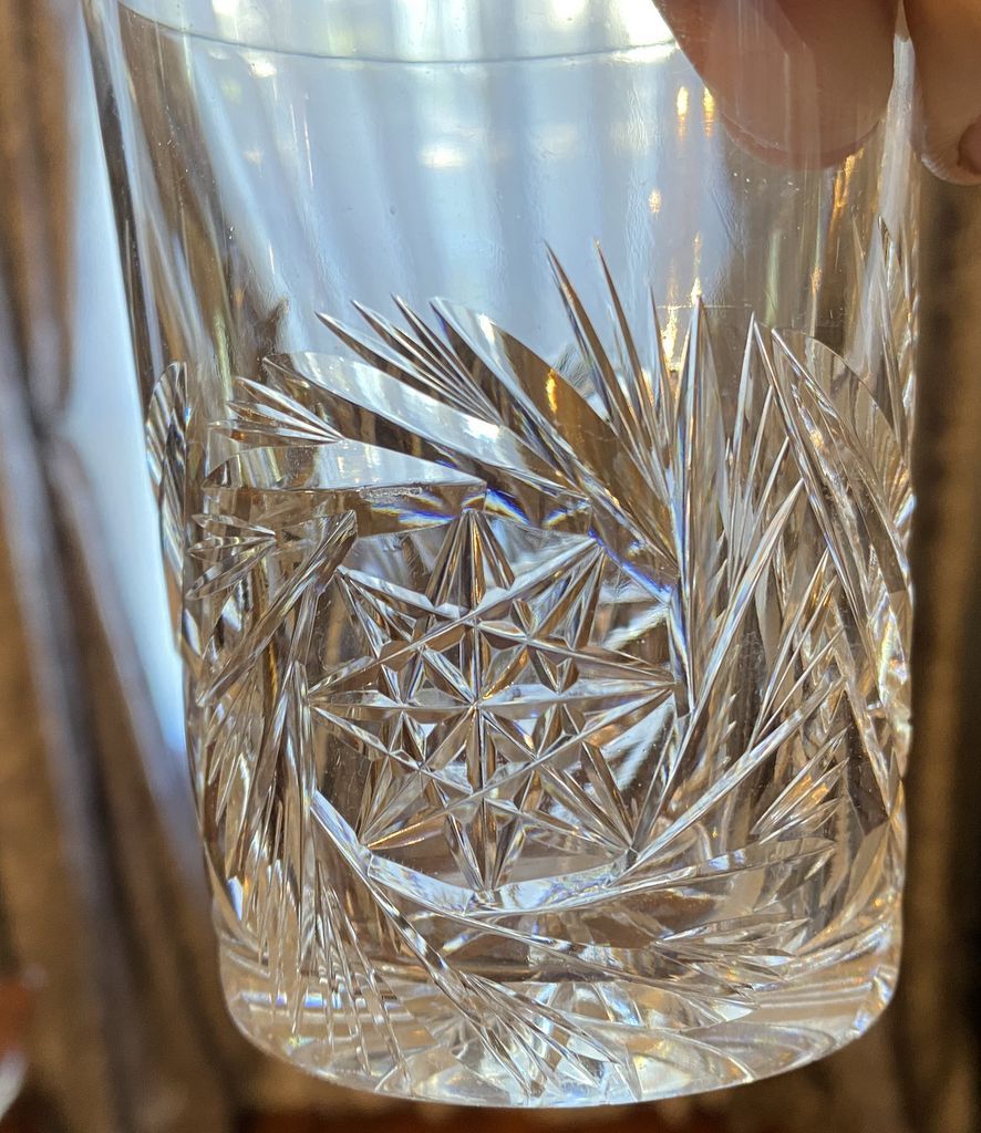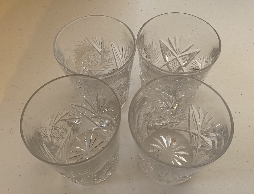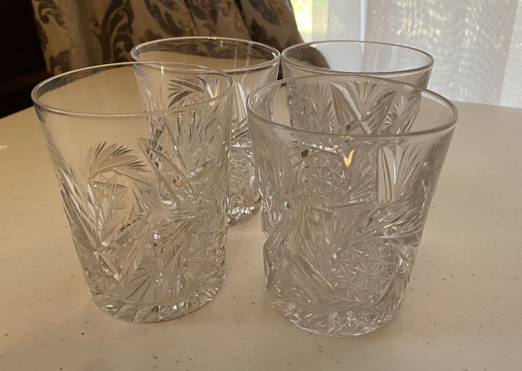 Four Cut Glass Drinking Glasses, 4"h., Location Dining Room Four Cut Glass Drinking Glasses, 4"h., Location Dining Room