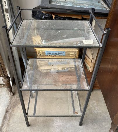 Modern Three Tier Glass Shelf Stand, 31"H., 16"wh, Location Garage Modern Three Tier Glass Shelf Stand, 31"H., 16"wh, Location Garage