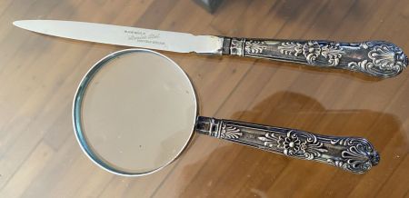 1015 Sheffield Silver Plated Letter Opener and Magnifying Glass