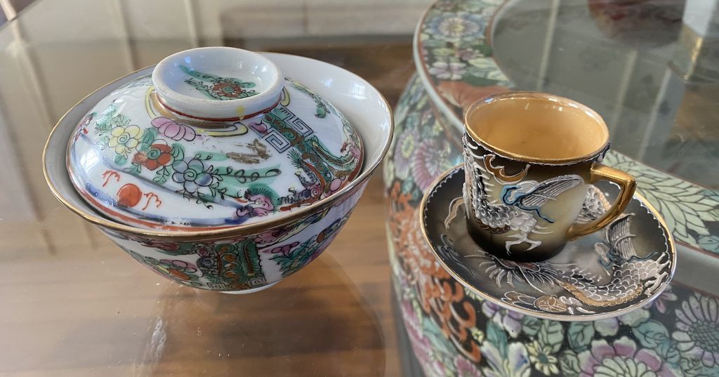 Japanese Porcelain Cup & Saucer and Rice Bowls, Location Living Room 1 Japanese Porcelain Cup & Saucer and Rice Bowls, Location Living Room 1