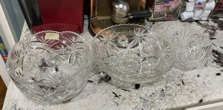Two Pressed Glass Fruit Bowls and Small Glass Bowl, 11"dia, Location Kitchen Two Pressed Glass Fruit Bowls and Small Glass Bowl, 11"dia, Location Kitchen