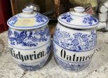 Blue and White Porcelain Food Canisters, 7"h, Location Kitchen Blue and White Porcelain Food Canisters, 7"h, Location Kitchen